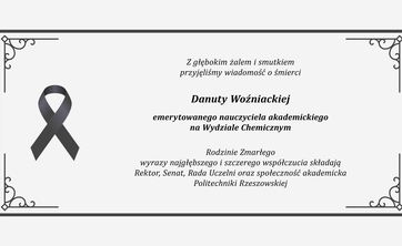 Rodzinie Zmarłej wyrazy najgłębszego i szczerego współczucia składają Rektor oraz Społeczność Akademicka Politechniki Rzeszowskiej.