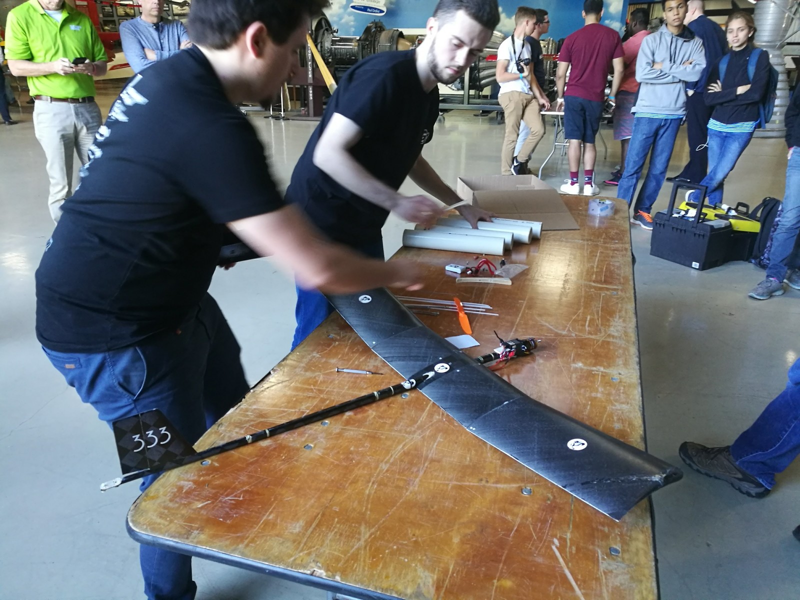 - Przed rozpoczęciem zmagań sprawdzono czy dokumentacja techniczna obu samolotów jest zgodna z regulaminem zawodów - relacjonuje Mateusz Rakieć z EUROAVIA Rzeszów, student lotnictwa i kosmonautyki WBMiL PRz. - Następnie przeprowadziliśmy prezentacje przed specjalistami z firmy Lockheed Martin. Nasze modele spotkały się z dużym uznaniem komisji, a także sędziów prowadzących inspekcję i współzawodników. Otrzymaliśmy wiele pochwał dotyczących zastosowanych rozwiązań i dokładności wykonania - opowiada.